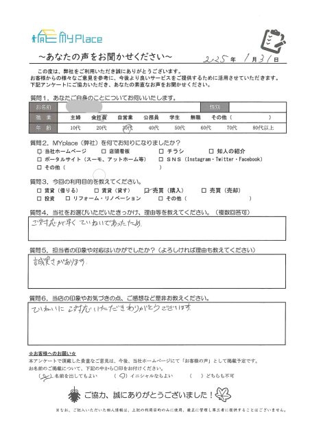 堺市の不動産売却|MYplace株式会社 > お客様の声一覧 > U.T